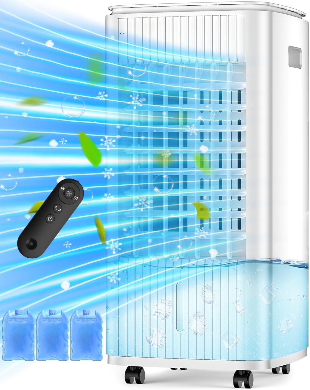 FANCOLE Windowless Portable Air Conditioners with 6 Ice Packs, 12H Smart Timer for Auto-off, 26Ft Remote, Top Fill Dual Tank, 3Speeds Evaporative Air Cooler, 65°Auto Swing Swamp Cooler Air Conditioner