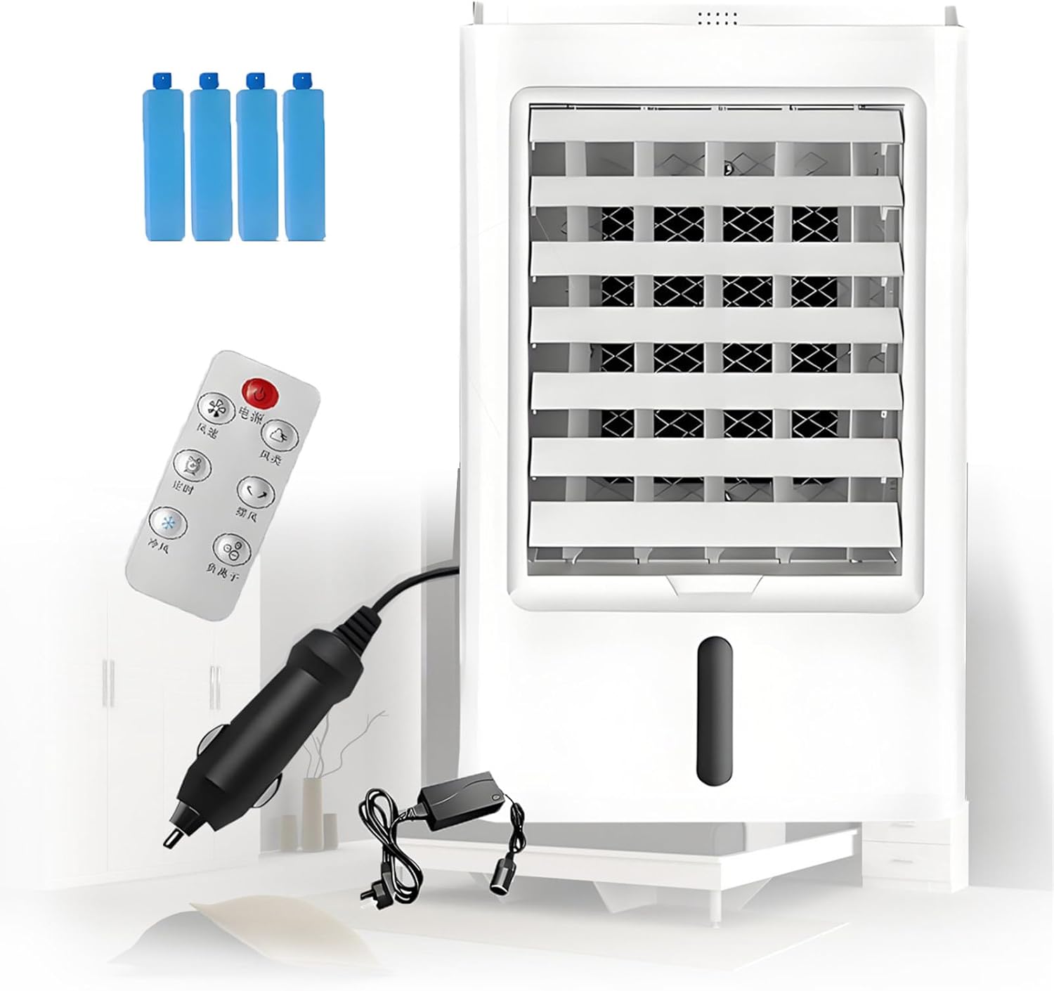 Portable Air Conditioners 4-in-1 Portable Air Cooler Fan Mini Evaporative AC Unit with 3-Speed and 4 Ice Packs Remote Control Touch Screen for Camping Office Bedroom Car 12VCar
