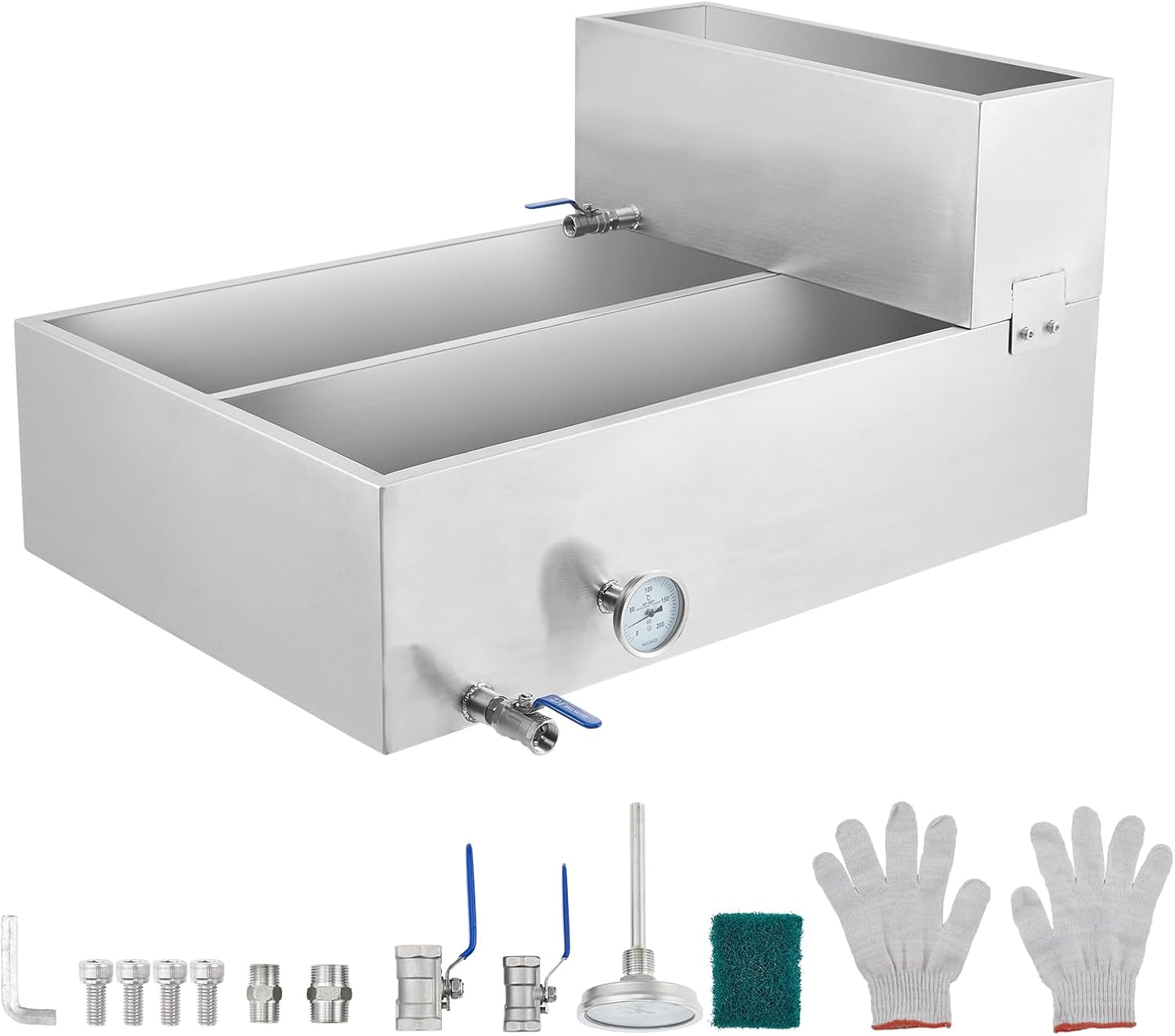 High Capacity Maple Syrup Evaporator Pan - Stainless Steel, 42.7 Gal, Pre-Heating Tank, Thermometer & Drain Valves, Upgraded Seamless Weld, Multi-Heat Compatible, Mini Evaporative Cooler, Size