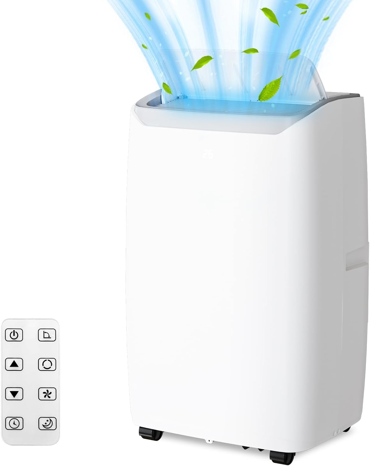 12000 BTU Portable Air Conditioner, with Remote Control, 3-in-1 Free Standing Cooling AC Unit with Fan & Dehumidifier, Cools Room up to 550 sq.ft, Smart/Sleep Mode,3 Speed,Auto Swing,24H Timer, White