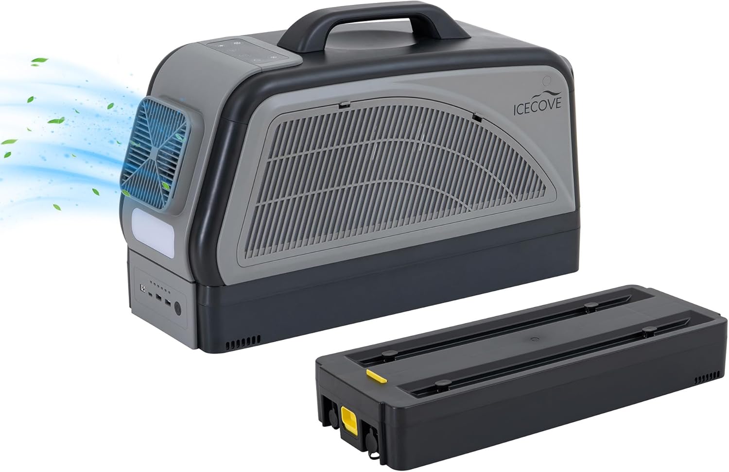IceCove Portable Air Conditioner with Add-on 2 Batteries, 2500BTU Portable AC Unit, 250W Low Power Consumption, 25.5VDC, 2 Fan Speed, 3 Light Mode for Tent Camping RV Truck Van Life Home, Gray