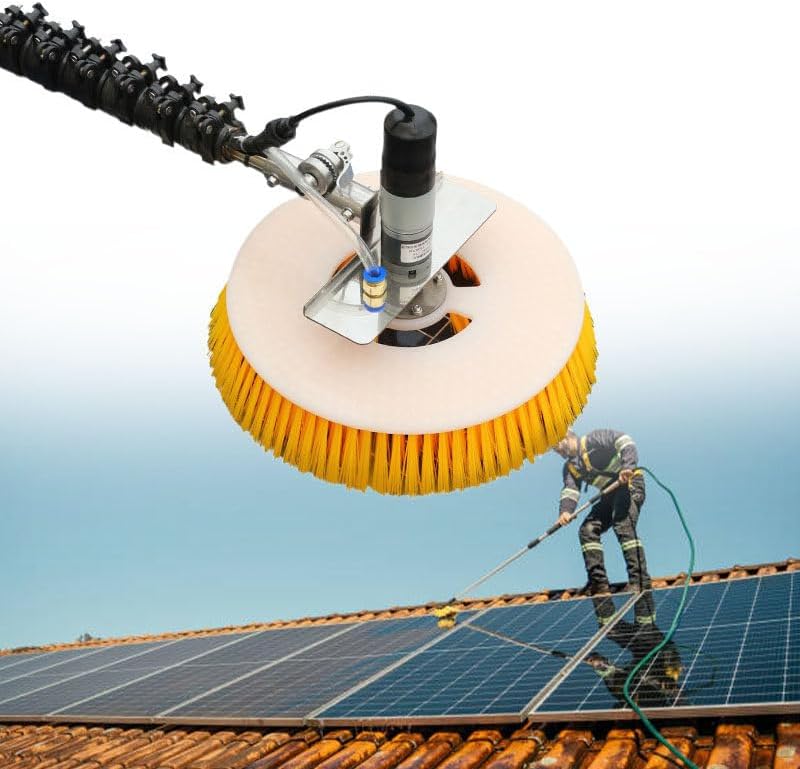Automatic photovoltaic Panel Cleaning Brush, Solar Cleaning Brush Telescopic for Outdoor use with Cleaning Brush, Telescopic Rod,10m