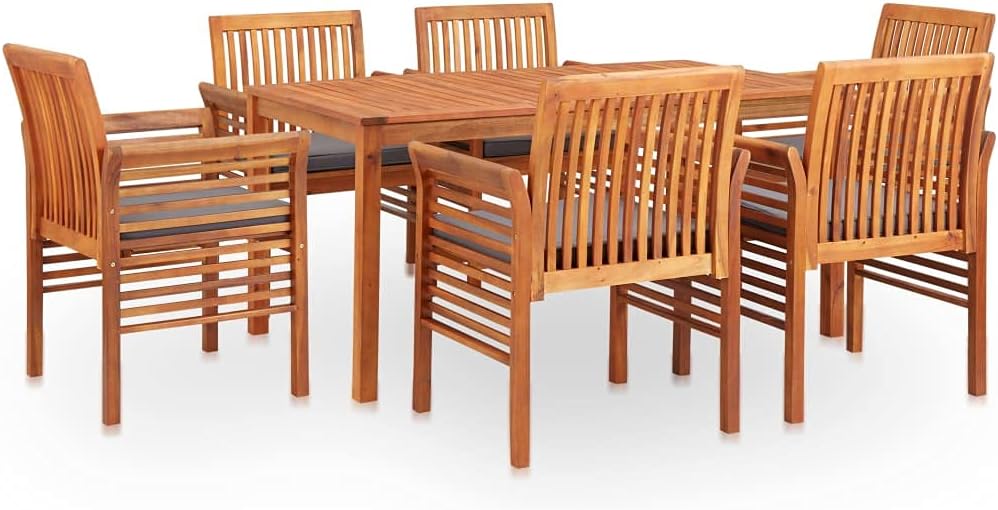 7 Piece Patio Dining Set with Cushions Solid Acacia Wood,Elegant 7Piece Acacia Wood Dining Set with Foam Cushions for Outdoor Patio or Backyard Patio Furniture Sets, Outdoor Furniture Sets