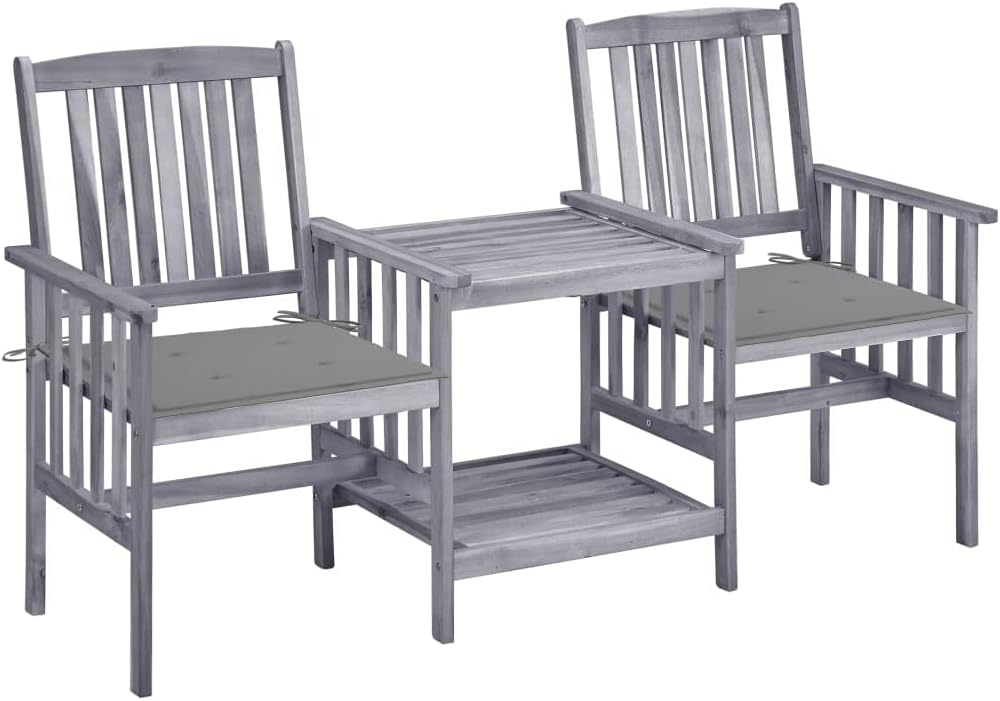 Patio Chairs with Tea Table and Cushions Solid Acacia Wood,Rustic Wooden Garden Chairs with Tea Table Stylish and Comfortable Outdoor Patio Set Patio Furniture Sets, Outdoor Furniture Sets