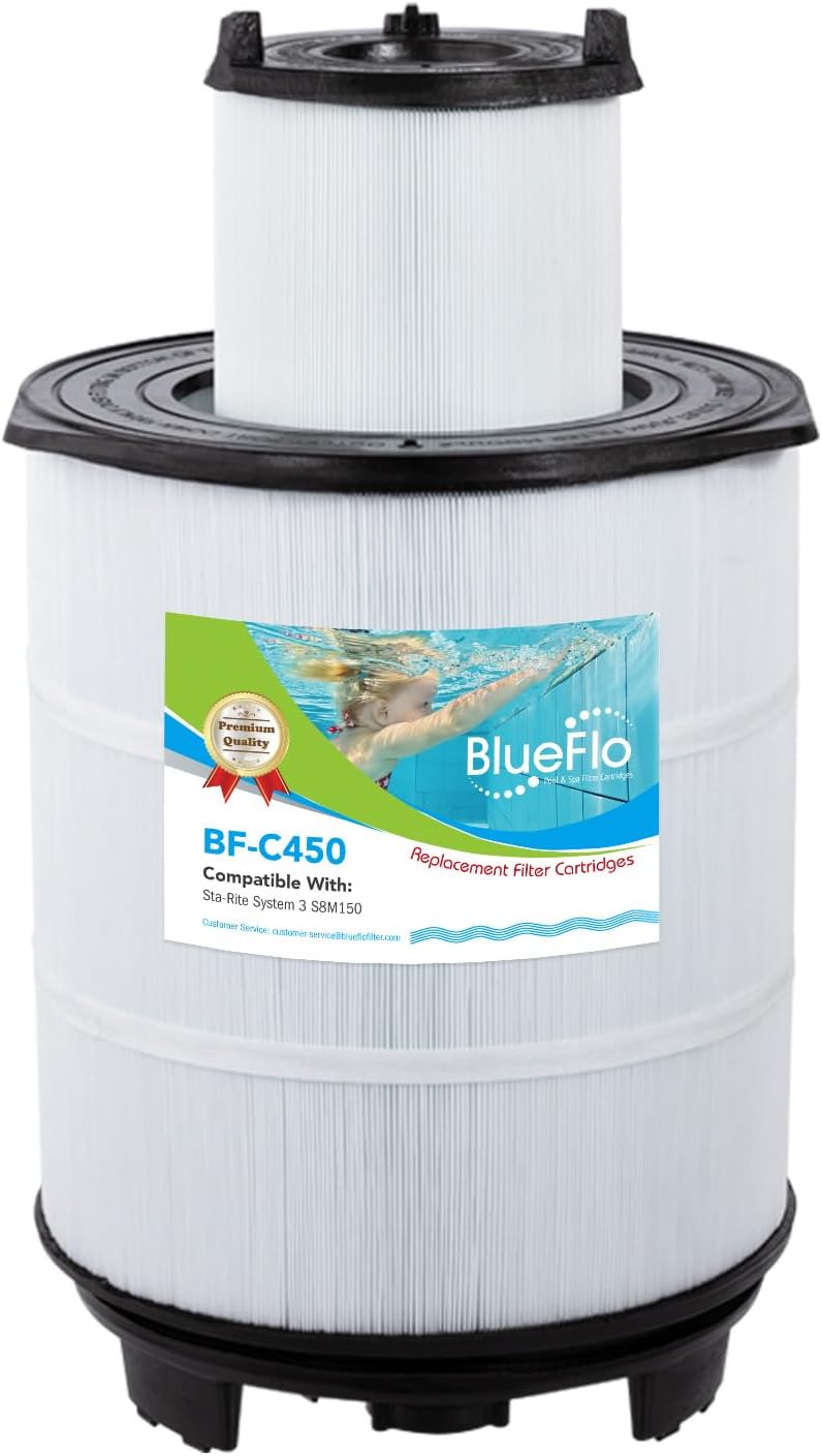 S8M150 Pool filter cartridge set Replacement for Sta-Rite S8M150 System 3, 170147, 25022-0203s-25021-0202s, SR450, 450 Sq.Ft. (Black)