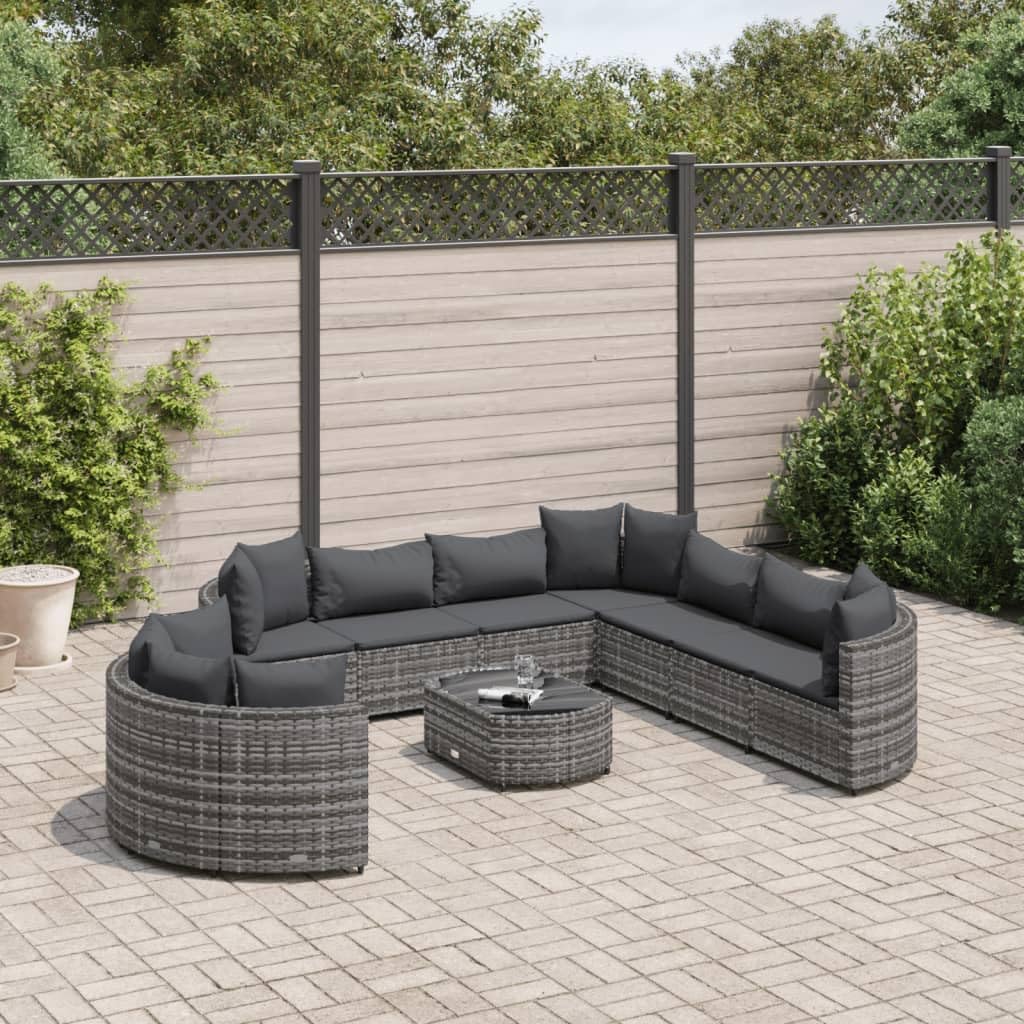 Furniture Sets 10 Piece Patio Sofa Set with Cushions Gray Poly Rattan,Versatile Outdoor Sofa Set with Cushioned Seating and Glass Top Garden Conversation Sets