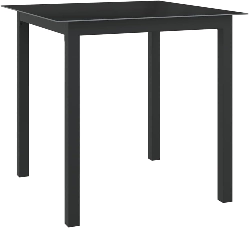 Patio Table Black 31.5"x31.5"x29.1" Aluminum and Glass,Modern and Sturdy Outdoor Table with Aluminum Frame and Glass Top for Garden, Balcony, and Patio Outdoor Tables, Furniture & Accessories for Pati