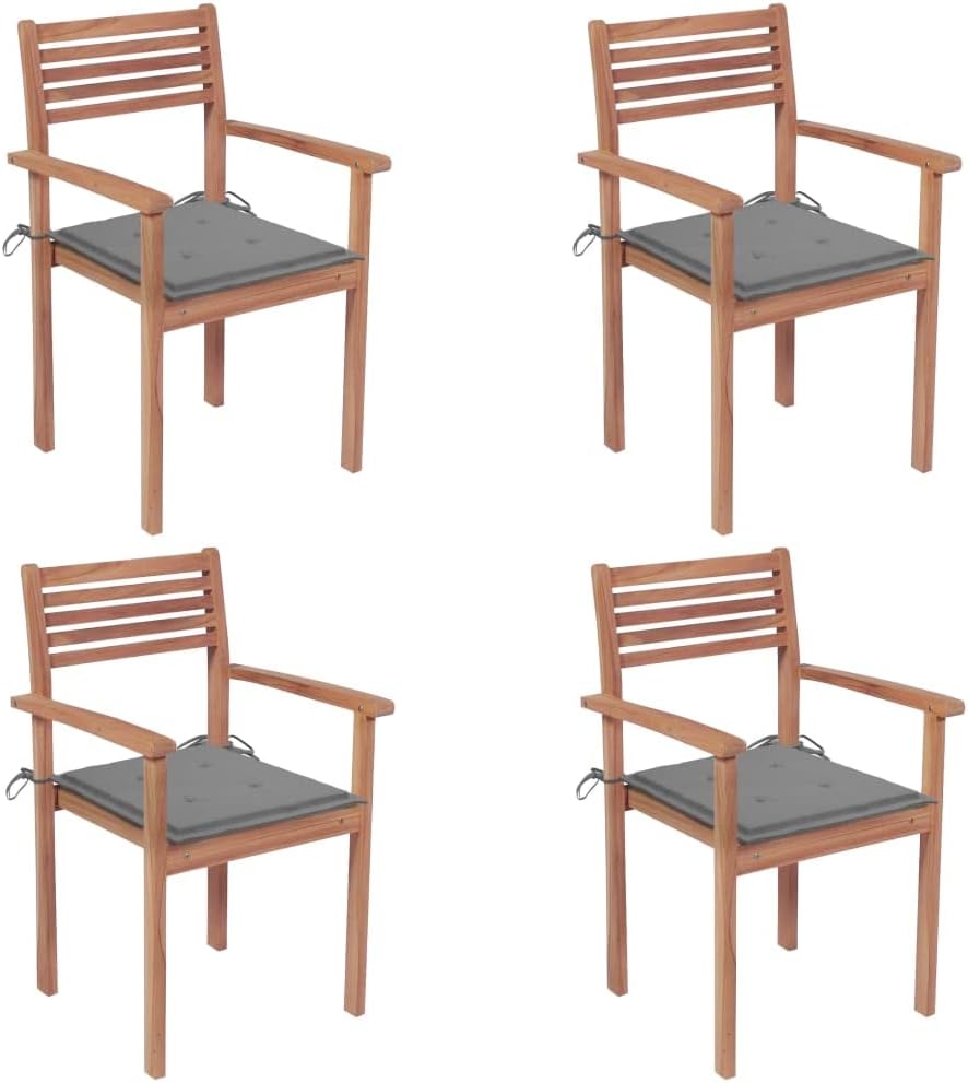 Patio Chairs 4 pcs with Gray Cushions Solid Teak Wood Outdoor Furniture, Outdoor Chairs