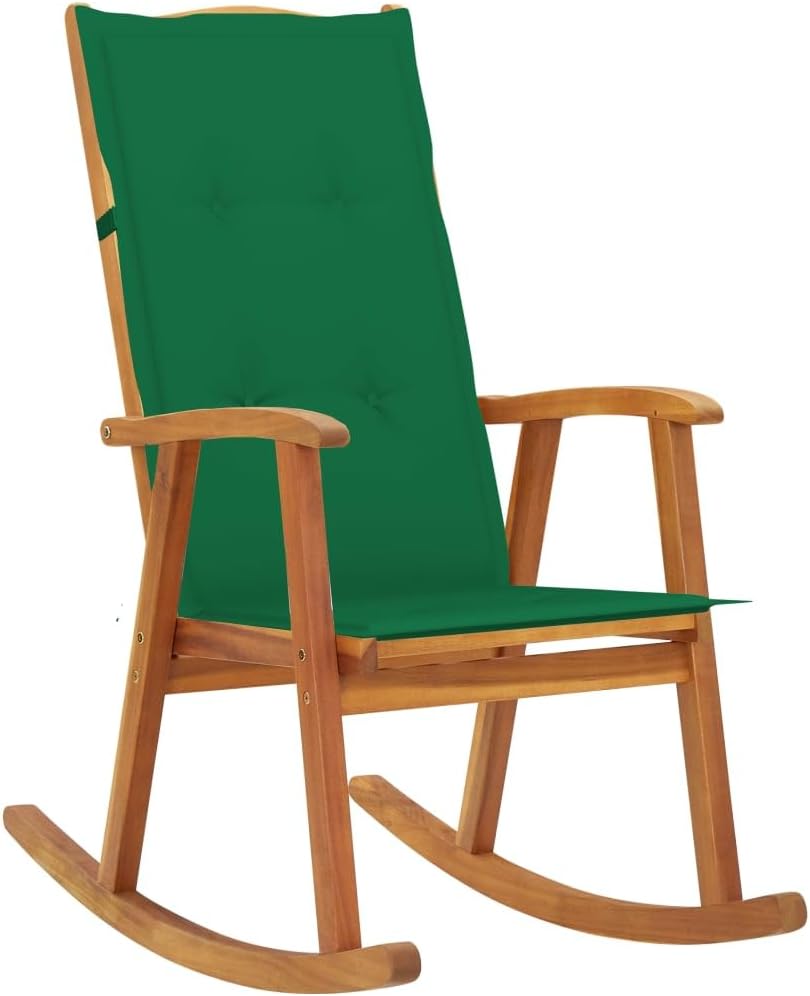 Rocking Chair with Cushions Solid Acacia Wood,Vintage Wooden Rocking Chair for Indoor and Outdoor Comfort with Green Cushion Outdoor Furniture, Outdoor Chairs