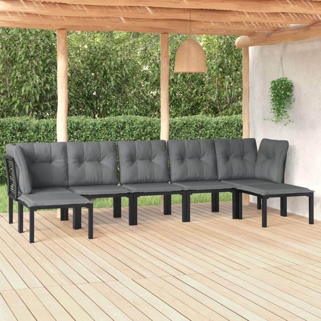 7 Piece Patio Lounge Set Black and Gray Poly Rattan,Modern Patio Lounge Set: Weatherproof, Comfortable, and Modular Patio Furniture, Outdoor Furniture Sets