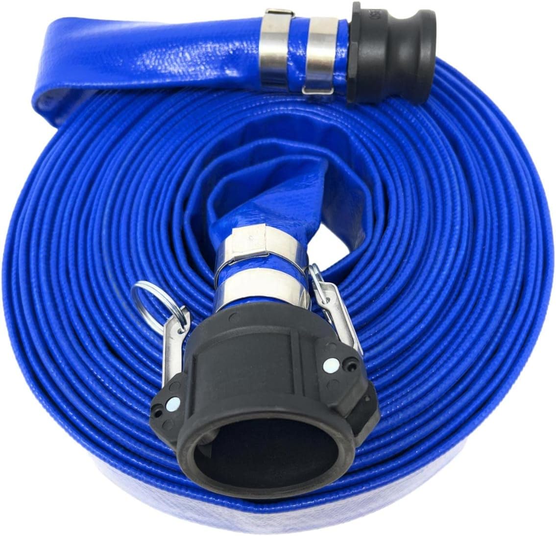 Gloxco 1-1/2" x 50′ Blue Lay Flat PVC Discharge Hose Assembly with Poly Cam and Groove C and E Fittings