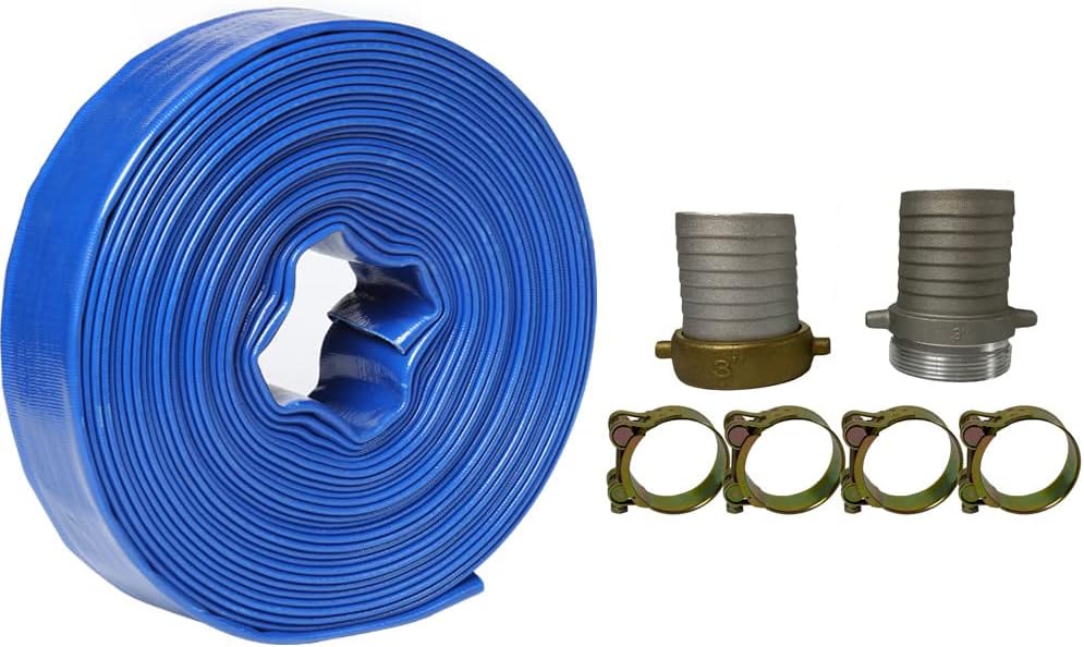 3" IN X 50' Feet Agricultural PVC Lay Flat Discharge Pump Hose Threaded Camlock