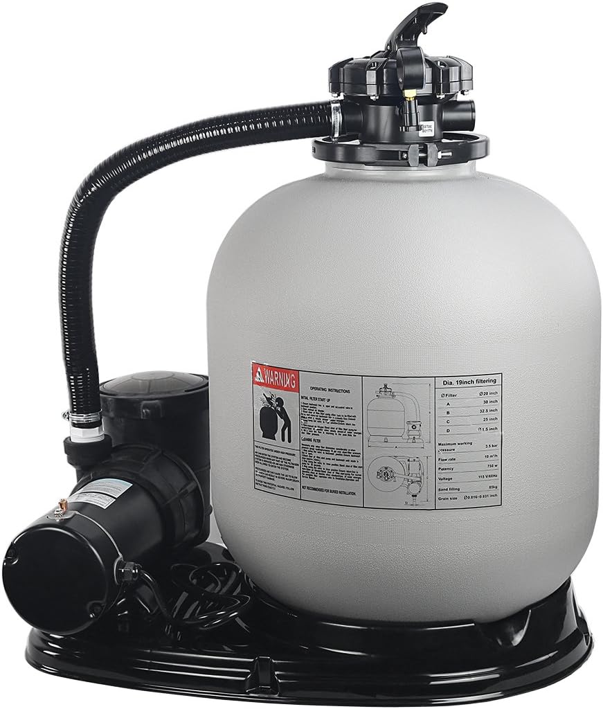 XtremepowerUS 19" inch Sand Filter with 1.5HP Pool Pump 4500GPH Above Ground Swimming Media System, Gray