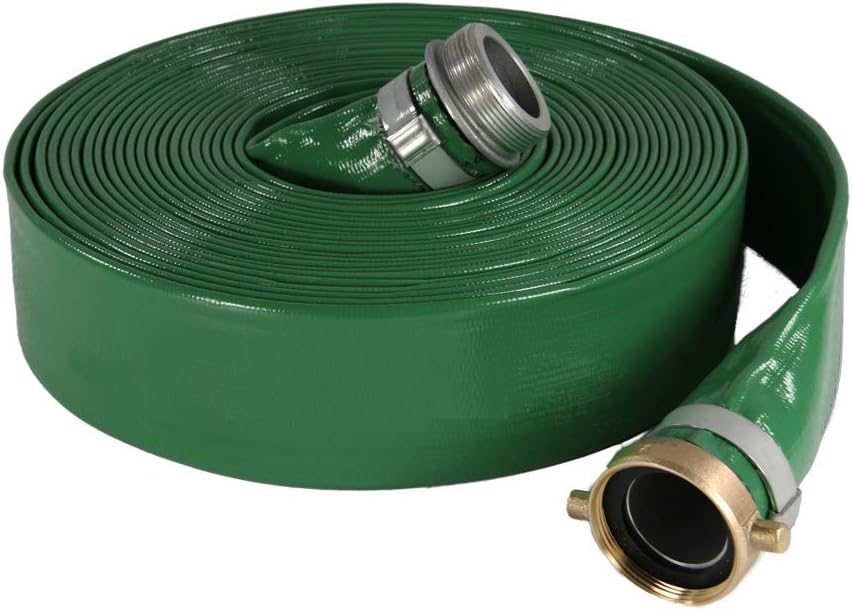 Blastline 3" ID Green Contractors PVC Water Layflat Discharge Hose Assembly with Pin Lug Fittings (25 Feet)