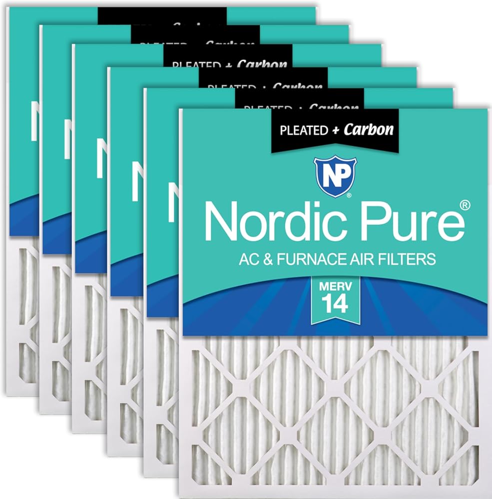 Nordic Pure 18x30x1 (17 3/4 x 29 3/4 x 3/4) Pleated Air Filters MERV 14 Plus Carbon 6 Pack