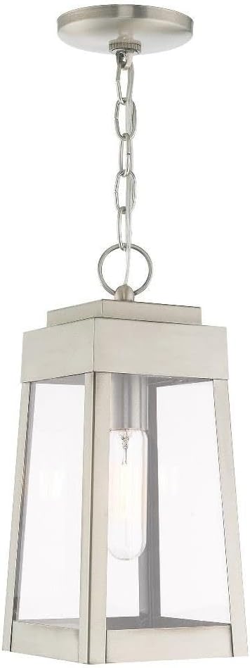 Livex Lighting 20854-91 Oslo - One Light Outdoor Hanging Lantern, Brushed Nickel Finish with Clear Glass