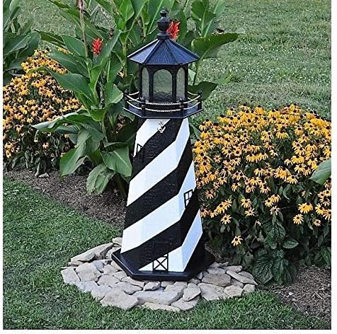 Amish-Made Cape Lookout, NC Replica Lighthouse with Solar-Powered LED Lighting, 95" Tall