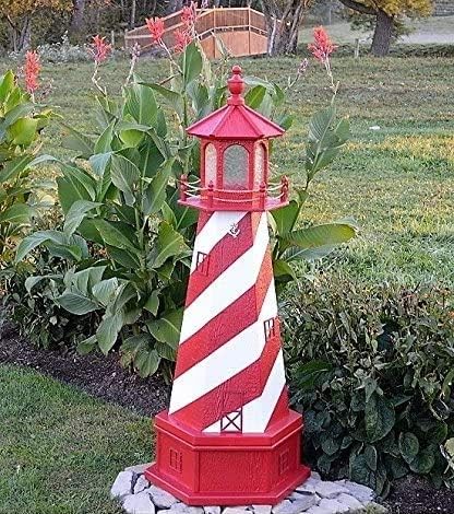 Amish-Made Cape Henry, VA Replica Lighthouse with Solar-Powered LED Lighting, 95" Tall