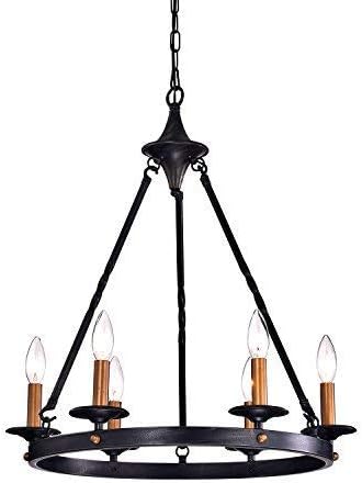 Edvivi Wagon Wheel Chandelier, 6 Lights Farmhouse Lighting Fixture with Antique Black Finish, Brass Candle Style Chandelier, Entryway, Living, Dining Room
