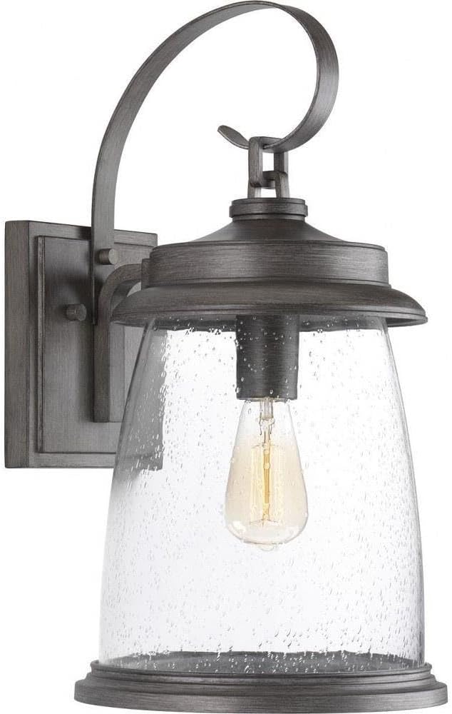Conover Collection 1-Light Clear Seeded Glass Farmhouse Outdoor Large Wall Lantern Light Antique Pewter