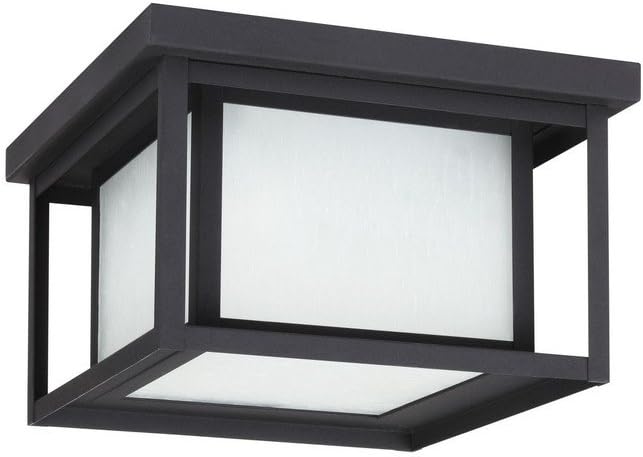Sea Gull Lighting 79039EN3-12 Hunnington Two Light Outdoor Ceiling Flush Mount Hanging Modern Light Fixture, Black Finish