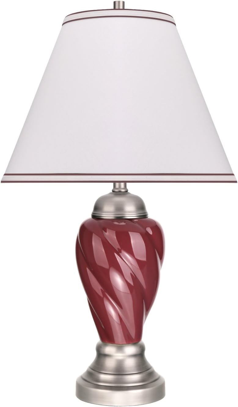 Aspen Creative 40093-4 Traditional Ceramic Table Pewter Finish Base and Hardback Empire Shaped Lamp Shade in Off White, 15.5" x 15.5" x 26.0", Burgundy