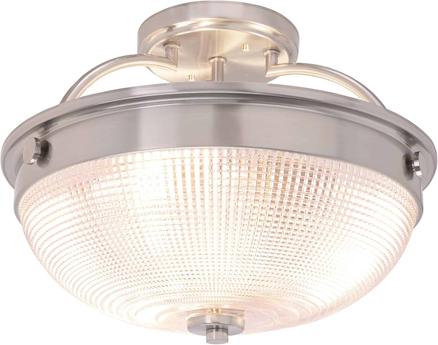 Aspen Creative 63501 3 Light Semi Flush Mount Ceiling Light Fixture, Transitional Design in Brushed Nickel Finish, Patterned Glass Shade, 12 3/4" Diameter