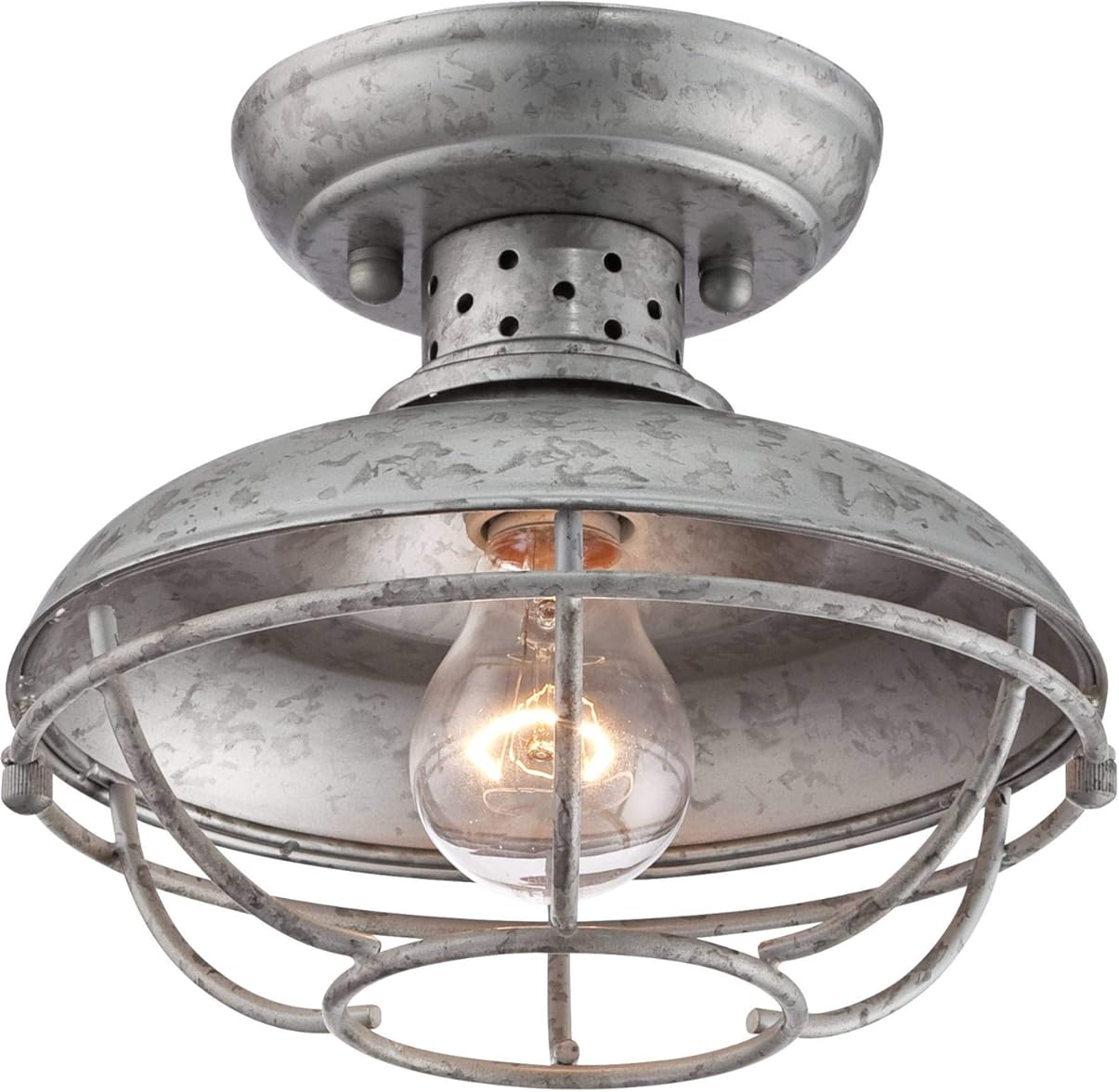 Franklin Iron Works Franklin Park Rustic Farmhouse Semi Flush-Mount Outdoor Ceiling Light Fixture Galvanized Cage 8 1/2" White Glass Damp Rated for Exterior Barn Deck House Porch Yard Patio Outside
