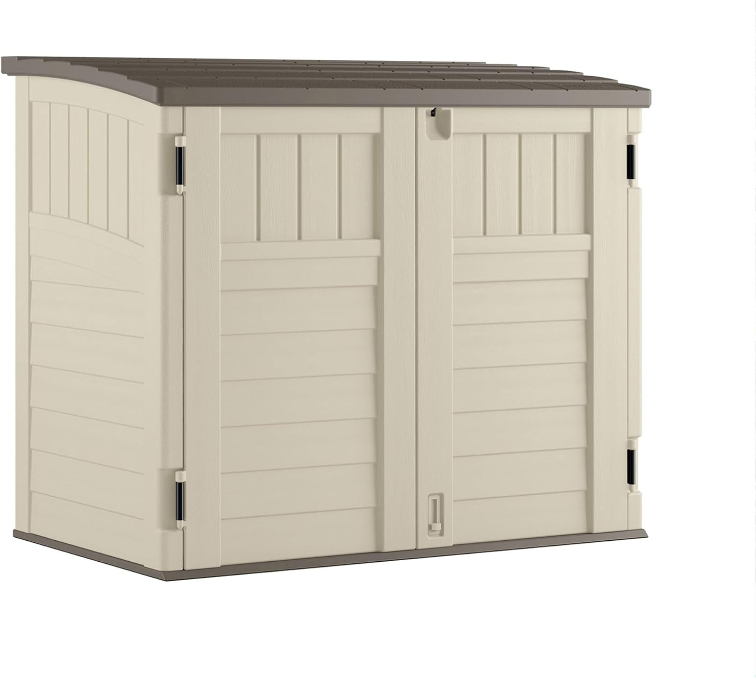 Suncast 34 Cu Ft Horizontal Resin Plastic Storage Shed - Outdoor Storage Shed with Floor Included, Lockable, Weatherproof, Fits Small to Medium Trash Cans, Generators, & Garden Tools, Vanilla Stoney