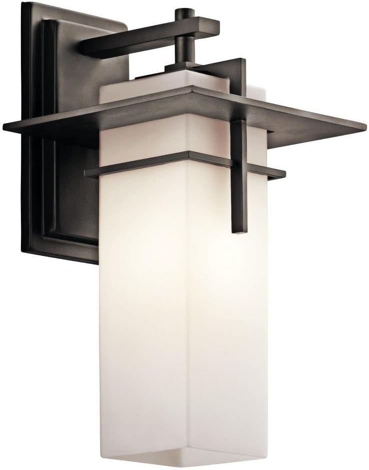 Kichler Caterham 14.75" Outdoor Wall Light in Olde Bronze®, 1-Light Exterior Porch Light Wall Sconce with Satin Etched Cased Opal Glass, (14.75" H x 8" W), 49643OZ