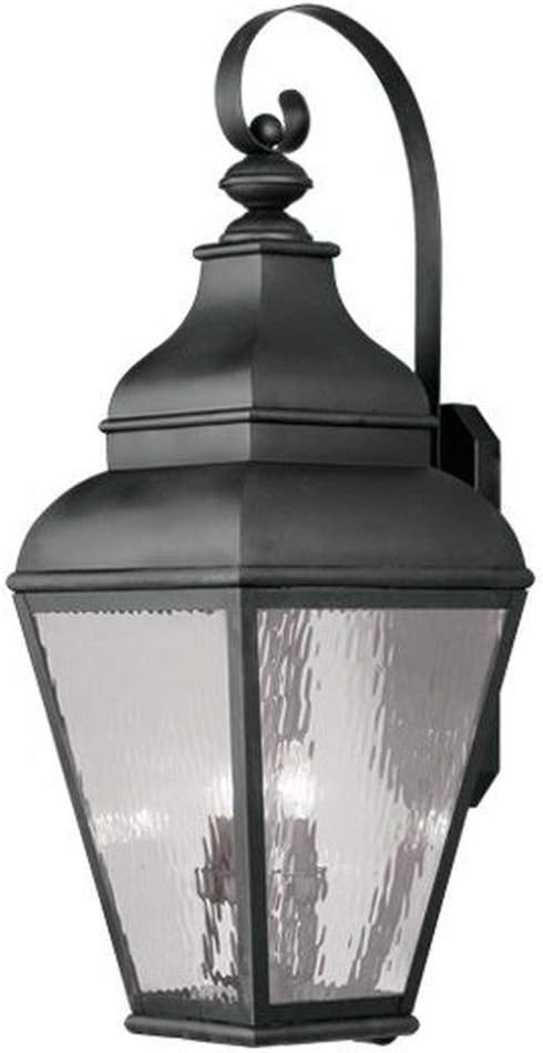 Livex Lighting 2607-04 Outdoor Wall Lantern with Clear Water Glass Shades, Black