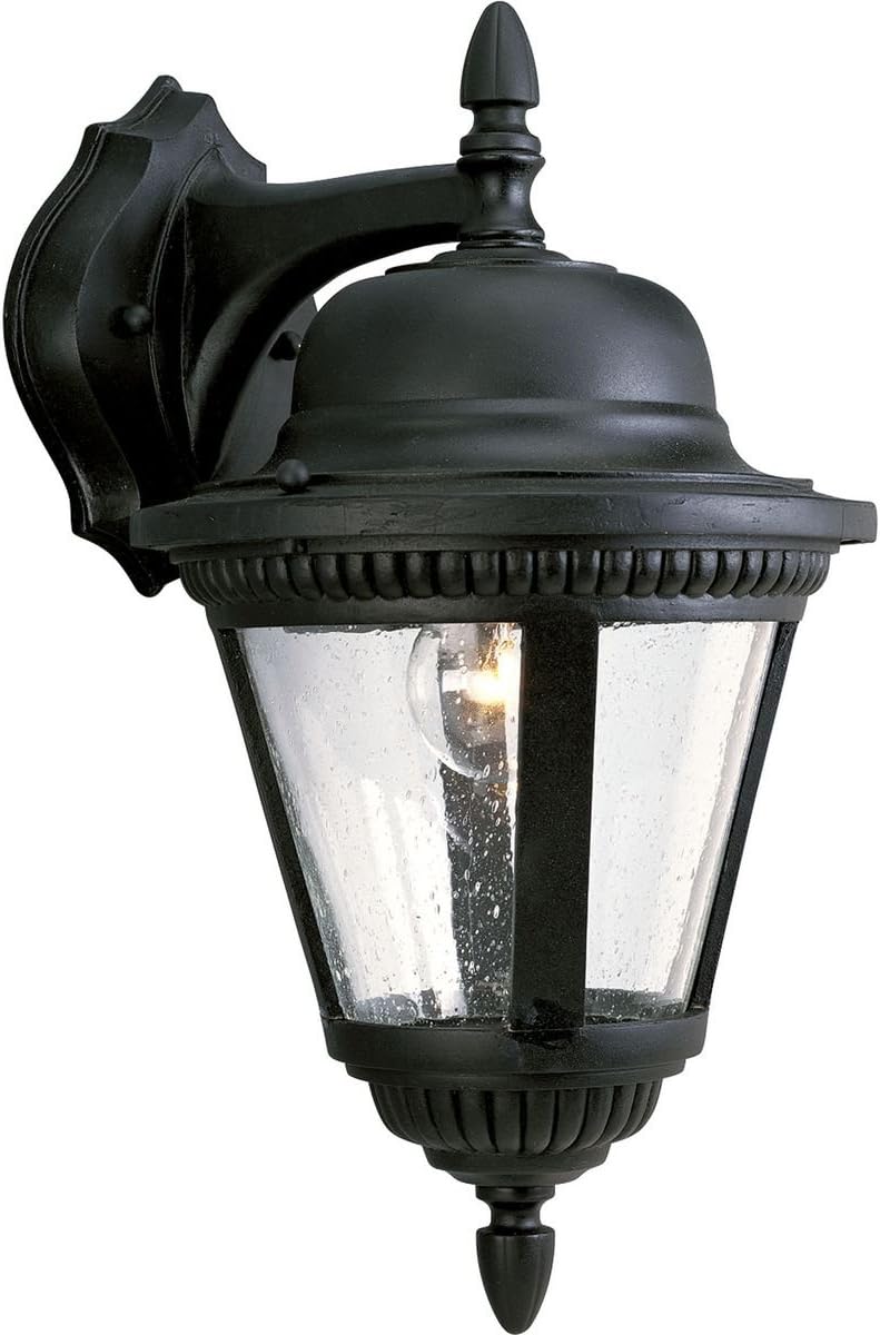 Progress Lighting P5863-31 1-Light Cast Wall Lantern with Clear Seeded Glass, Textured Black