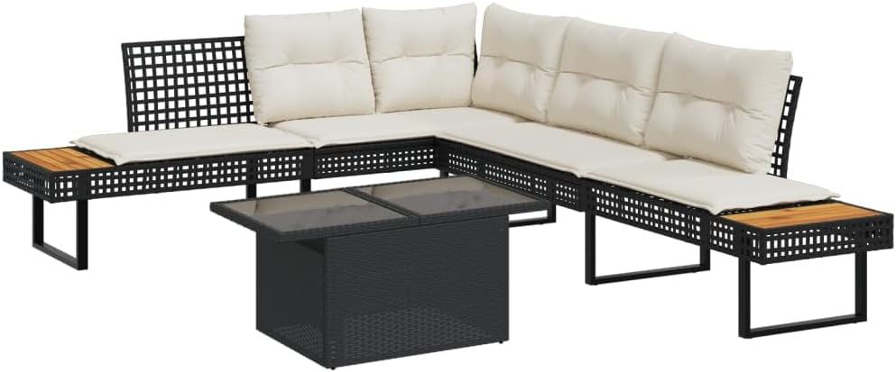 L-Shaped Garden Sofa Set, Black PE Rattan, Large Adjustable Armrests, 5-Seater Patio Furniture for Outdoor Living