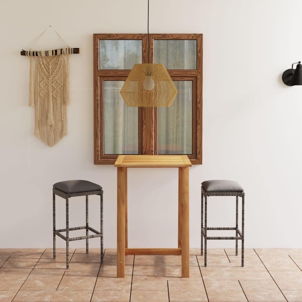 Patio Set 5 Piece Patio Bar Set Black Solid Wood Acacia and Poly Rattan