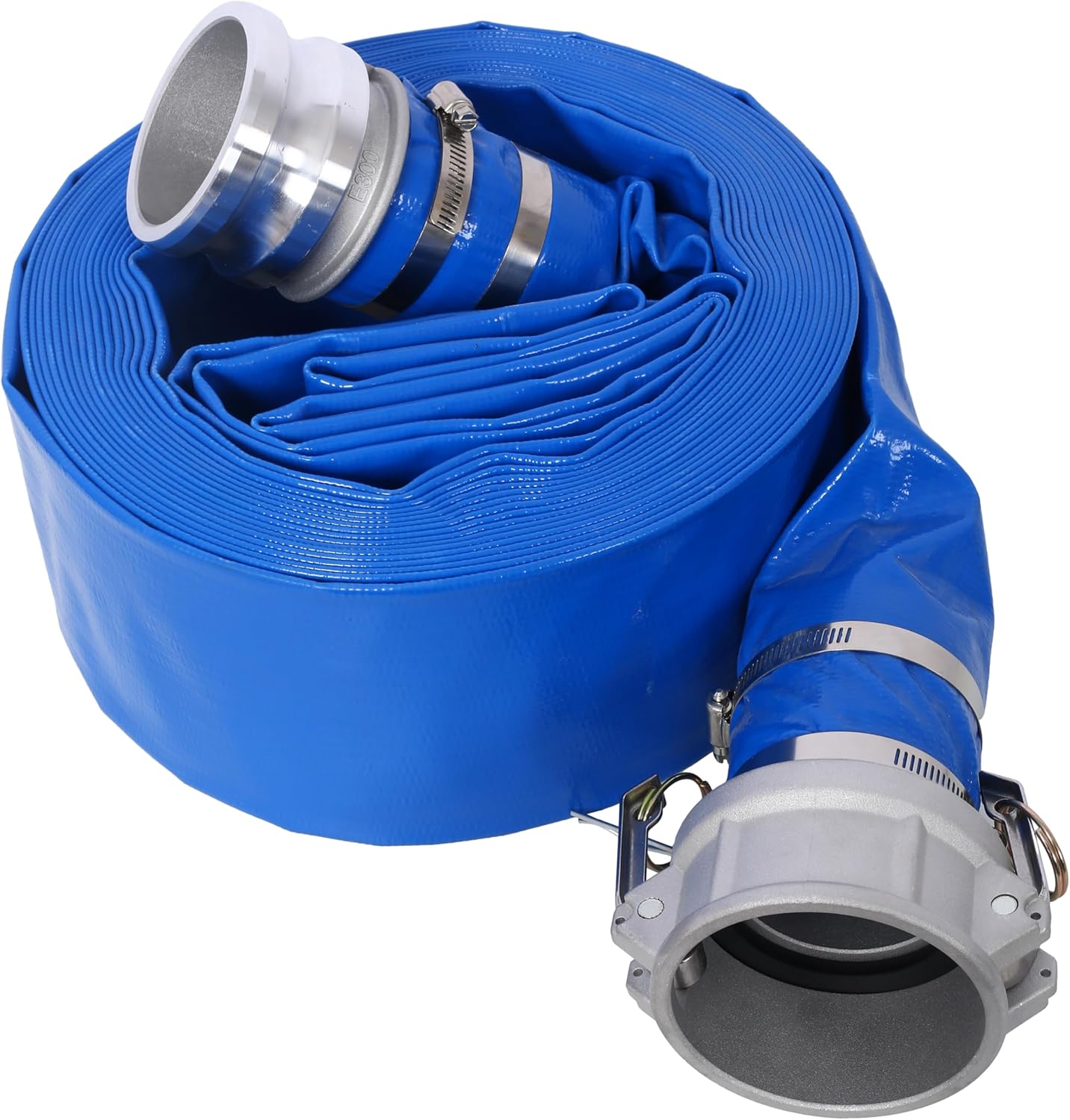 Donext 3"x50FT Pool Backwash Hose, Heavy Duty PVC Pool Hose for Above Ground Pools, Reinforced Blue Lay Flat Water Hoses, Swimming Drain Pools Clean Filters, with Aluminum Camlock Fittings