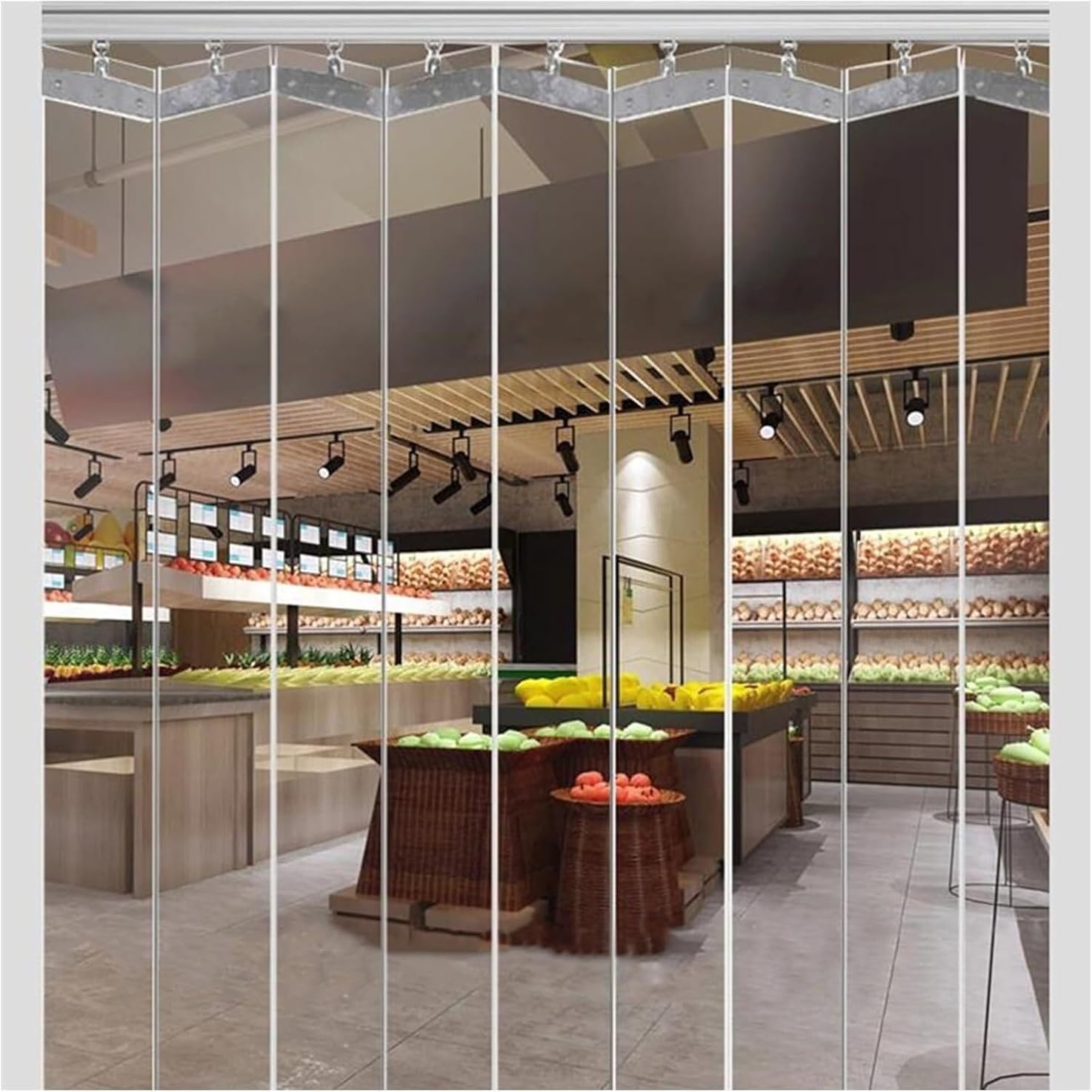 LNNW Strip Door Curtain Hanging Sliding Folding Clear Strip Door Curtain, Factory Chiller Butcher Pest Control Curtain(1.6X2.2M) for Doorway of Supermarket, Garage, Warehouse