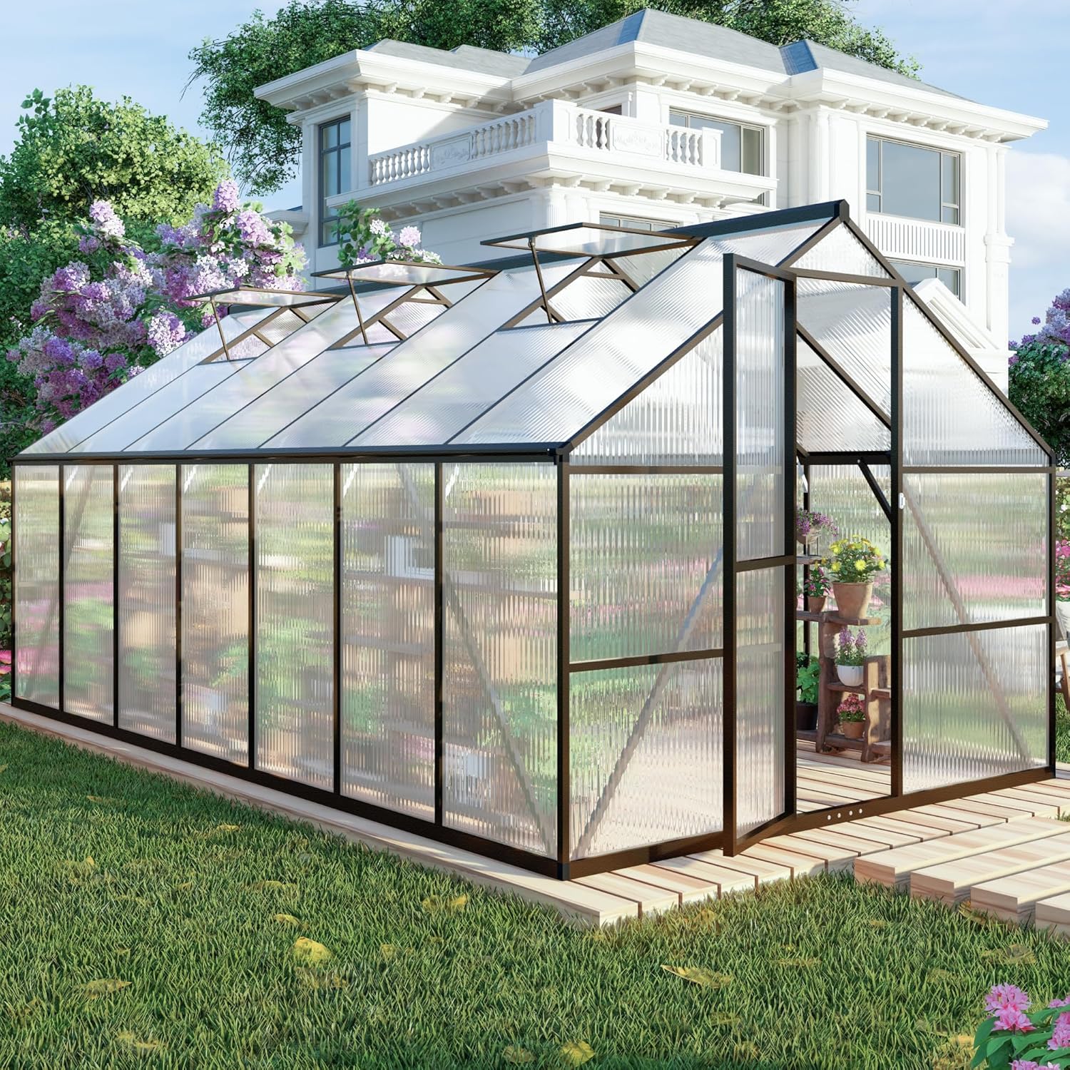 8 x 14 FT Aluminum Large Walk-in Greenhouse for Outdoors, Gray Polycarbonate Garden