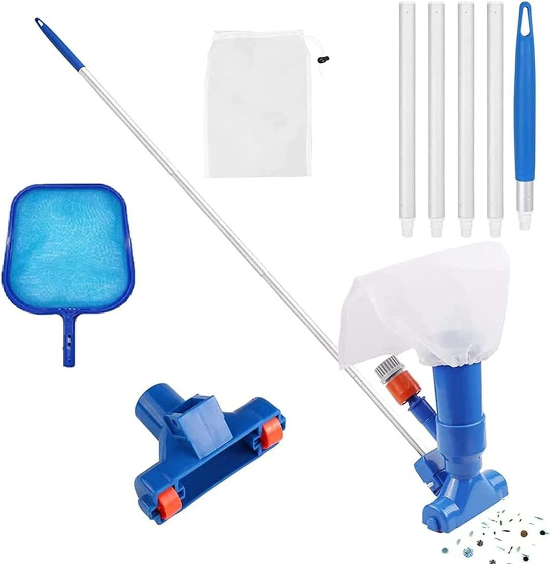 Portable Pool Vacuum Cleaner Kit, Swimming Pool Cleaning Accessories with 5 Section Aluminum Pole 1 Mesh Bags and 1 Swimming Pool Net for Above Ground Pool