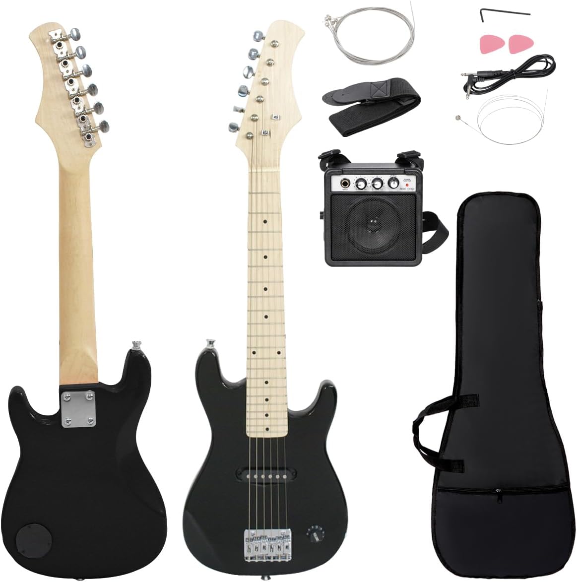 30" Beginner Electric Guitar with 5W Amp and Accessories Pack Guitar Bag for Kids/Girls/Boys/Beginners (Black)