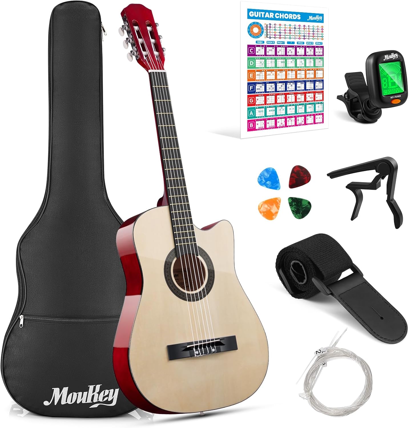 KLOS Travel Guitar, Durable Carbon Fiber Acoustic Guitar - Black with Gig Bag, Strap, Capo and more