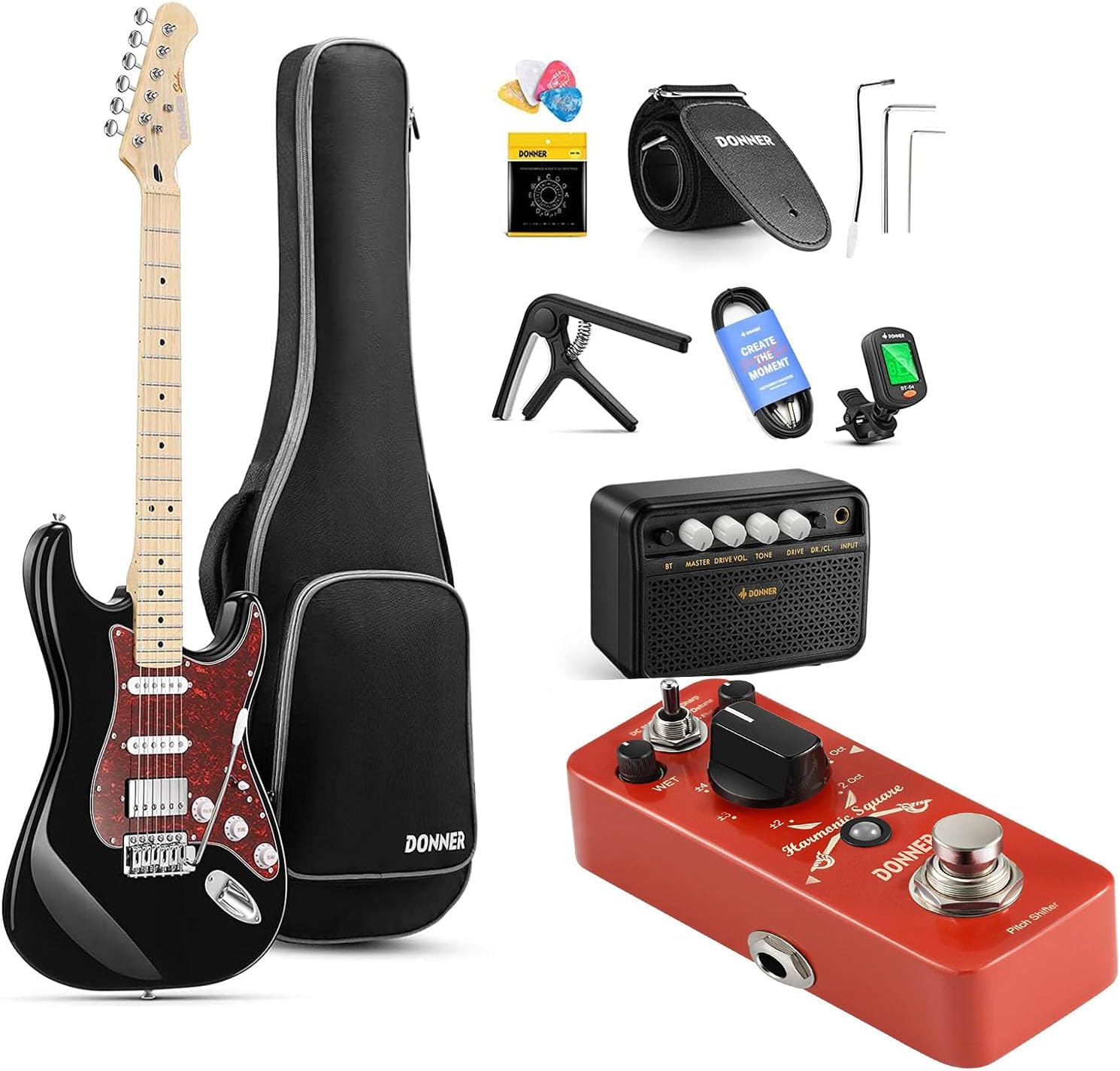 Donner Electric Guitar, DST-152S 39" Electric Guitar Kit HSS Pickup Coil Split-Noise Gate Pedal