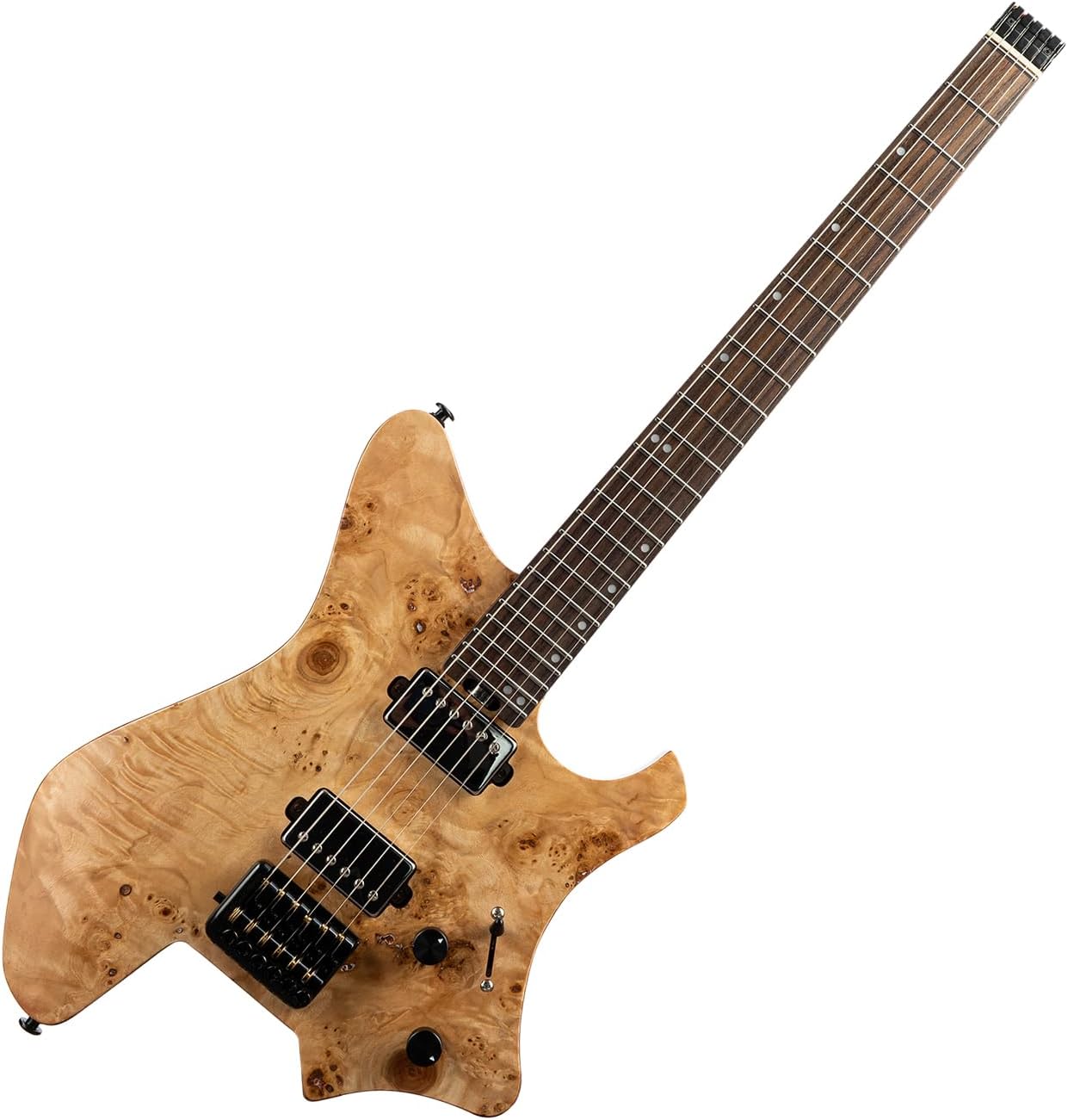EART GW2 25.5" Headless Electric Guitar - Roasted Padauk Soild Body/5pc Maple Neck - Alnico-V Pickups, Stainless Frets