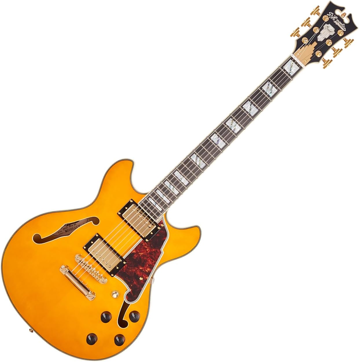 D'Angelico 6 String Semi-Hollow-Body Electric Guitar, Right, Fiesta Red (DAPMINIDCFRCSCB)