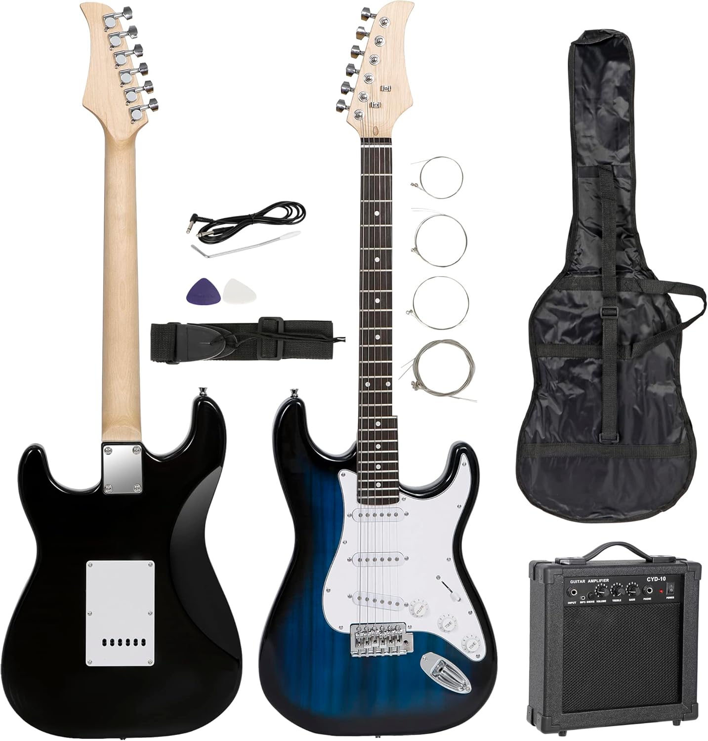 Smartxchoices 39" Full Size Electric Guitar with 10W Amp,Gig Bag Case Guitar Strap Package for Beginner Starter (Blue)