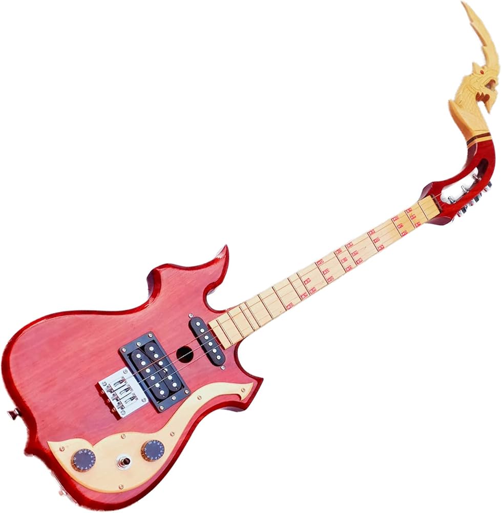 Isarn Acoustic Electric Phin 3 Strings 3 Track, Thai Lao Guitar Musical Instrument, Traditional Thai Musical Pin 18
