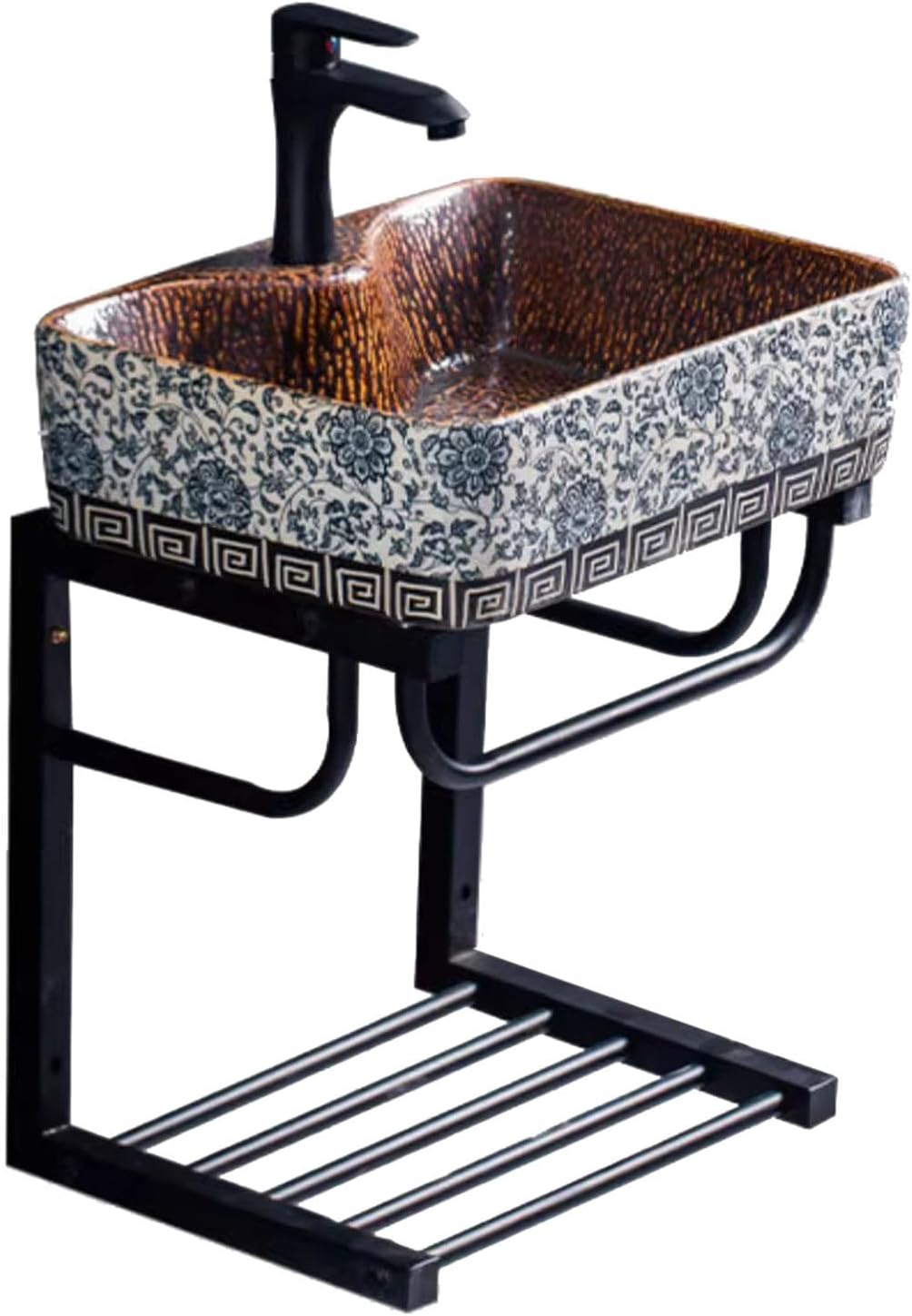 Corner Wall Mount Bathroom Sink, Wall Mounted Bathroom Sink, Bathroom Sink with Towel Rack,Without mirror-42x42cm,Without Mirror-42x42cm