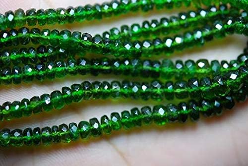 14 Inches Strand, AAA Super Rare Chrome Diopside Faceted Rondelles Large Size 3.5-4mm Code-HIGH-55726