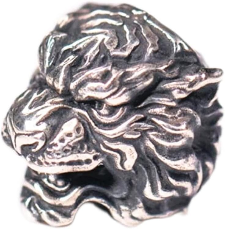 EDC Solid Brass Tiger Head Pendant Parachute Paracord Cord Tool Lanyard Bead zipper pull Gift 925 silver)