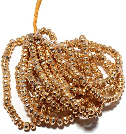 3 Strands Wholesale Natural Pyrite Beads, Faceted Rondelle Beads, Coated Gold Beads, 7mm Beads, 16 Inch Strand