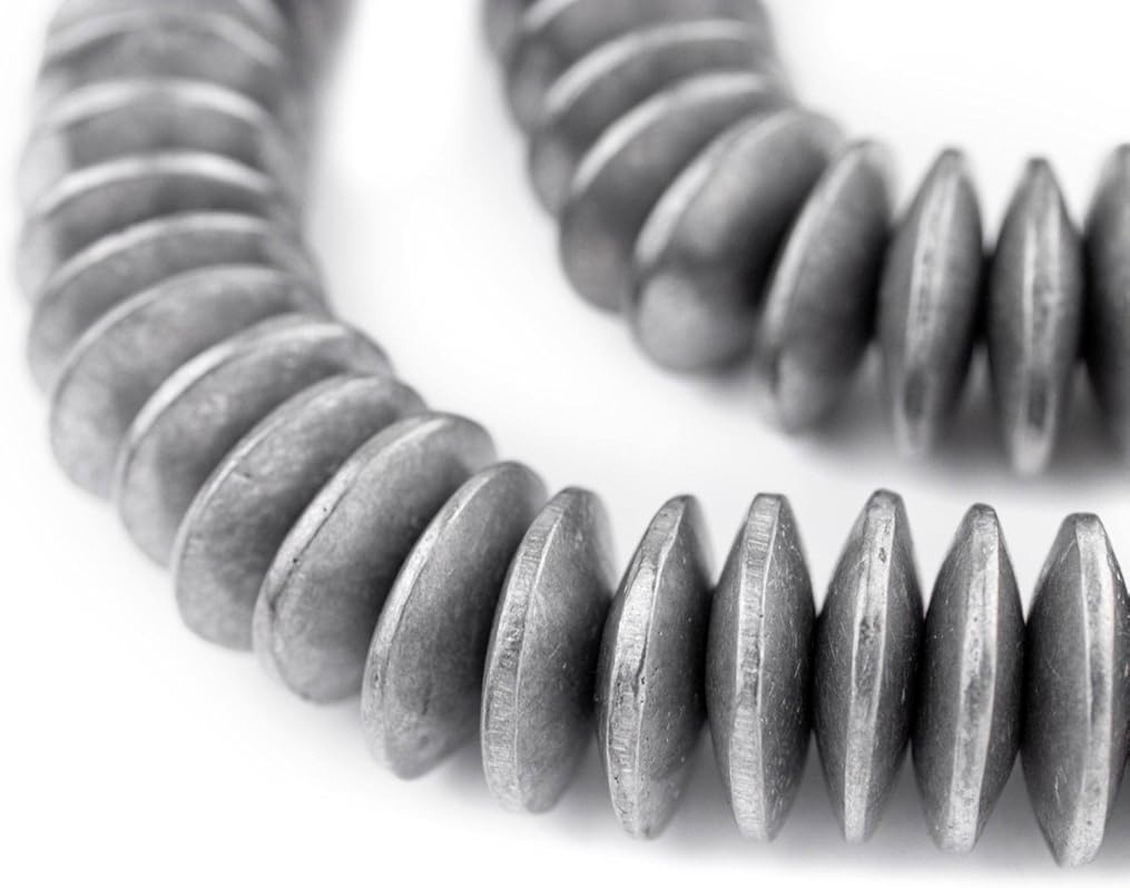 The Bead Chest Maasai Silver Saucer Beads 20mm Aluminum Large Hole 24 Inch Strand